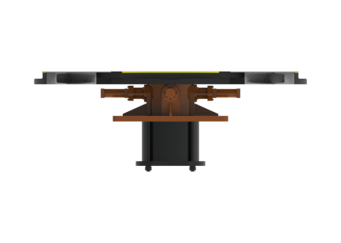 The maximum diameter (φ1425) of the built-in pneumatic wheelset turntable is smaller than the rails. No need to cut the rails when installed. The wheel sets can freely enter and exit the turntable through the internal rails of the factory, eliminating the disadvantages of the traditional turntables whose diameter is larger than the rails and need to cut the rails, at the same time with the advantages of no need to reduce the rail load capacity, no derailment and no damage to the tread. During work, the turntable rises 110mm-140mm, achieving clockwise and anticlockwise steering (rotating 90° each time), and completing the turntable reset after steering. Available methods include manual (by foot) control, short-range control, remote control, operation is simple , safe and reliable.